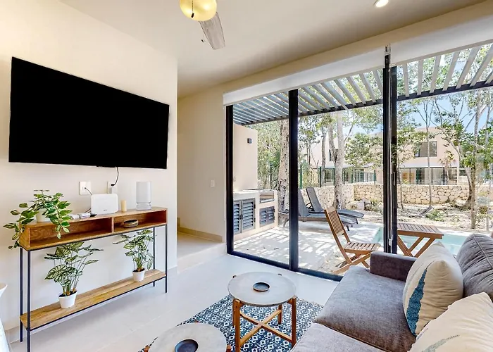 Situada a 16 minutos a pé de Grand Cenote, Tao Edena 94 Vila fornece acesso a inúmeras atrações turísticas na área. Os hóspedes podem desfrutar de windsurf, snorkeling e mergulho nesta propriedade, localizada a aproximadamente 4 km do Parque Nacional de Tulum.